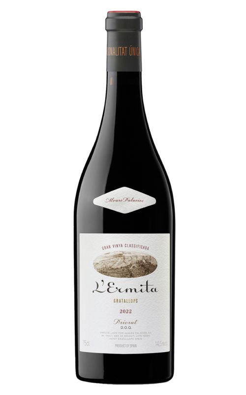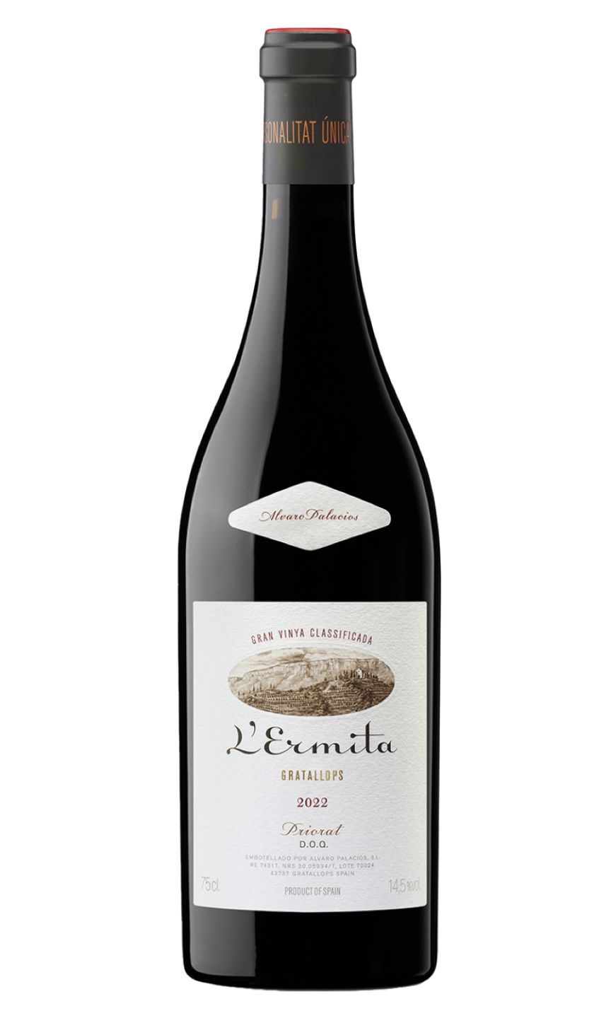 The 2022 L’Ermita is a powerful yet elegant Priorat red, dominated by Garnacha with a touch of Cariñena. Aromas of ripe red and black fruits — cherries, raspberries, blackberries — mingle with wild herbs, lavender, and subtle mineral notes. On the palate, it is focused and refined, with fine tannins, vibrant acidity, and layered flavours of dark fruit, wild mint, and crushed rock, leading to a long, polished, and ethereal finish that showcases both sophistication and ageing potential.