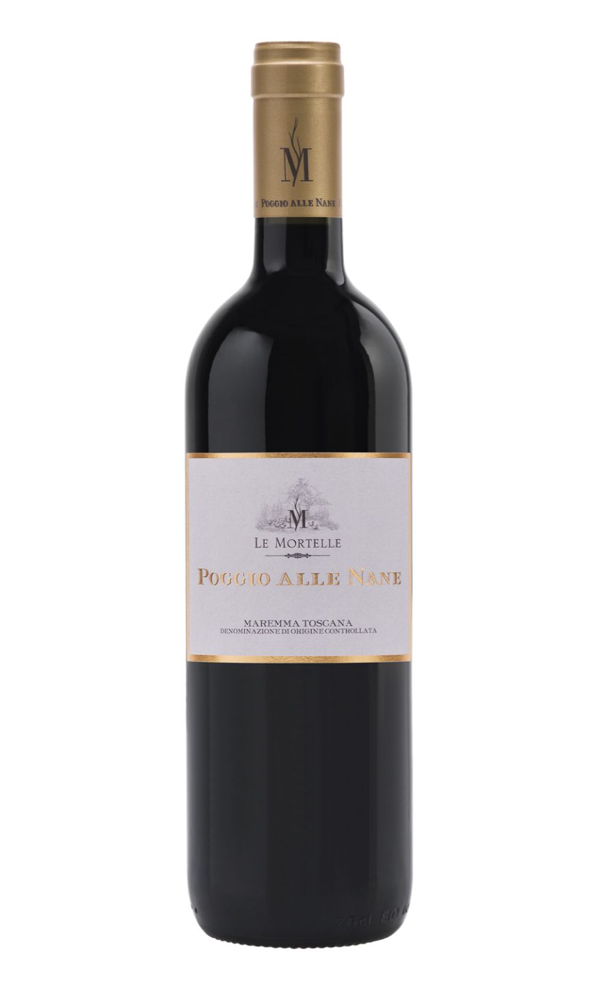 Poggio alle Nane presents a deep red color. The nose fascinates for its varietal character with sensations of ripe black berry fruit, which unite with notes of mountain herbs, black currants, and thyme. The hints of liquorice and violets, balsamic and floral, complete the picture, in complete harmony with sweet spices. The palate is rich and elegant, potent, with lovely and silky tannins and a long and persistent finish. The wine closes with notes of bitter chocolate, wild cherries, and tobacco.