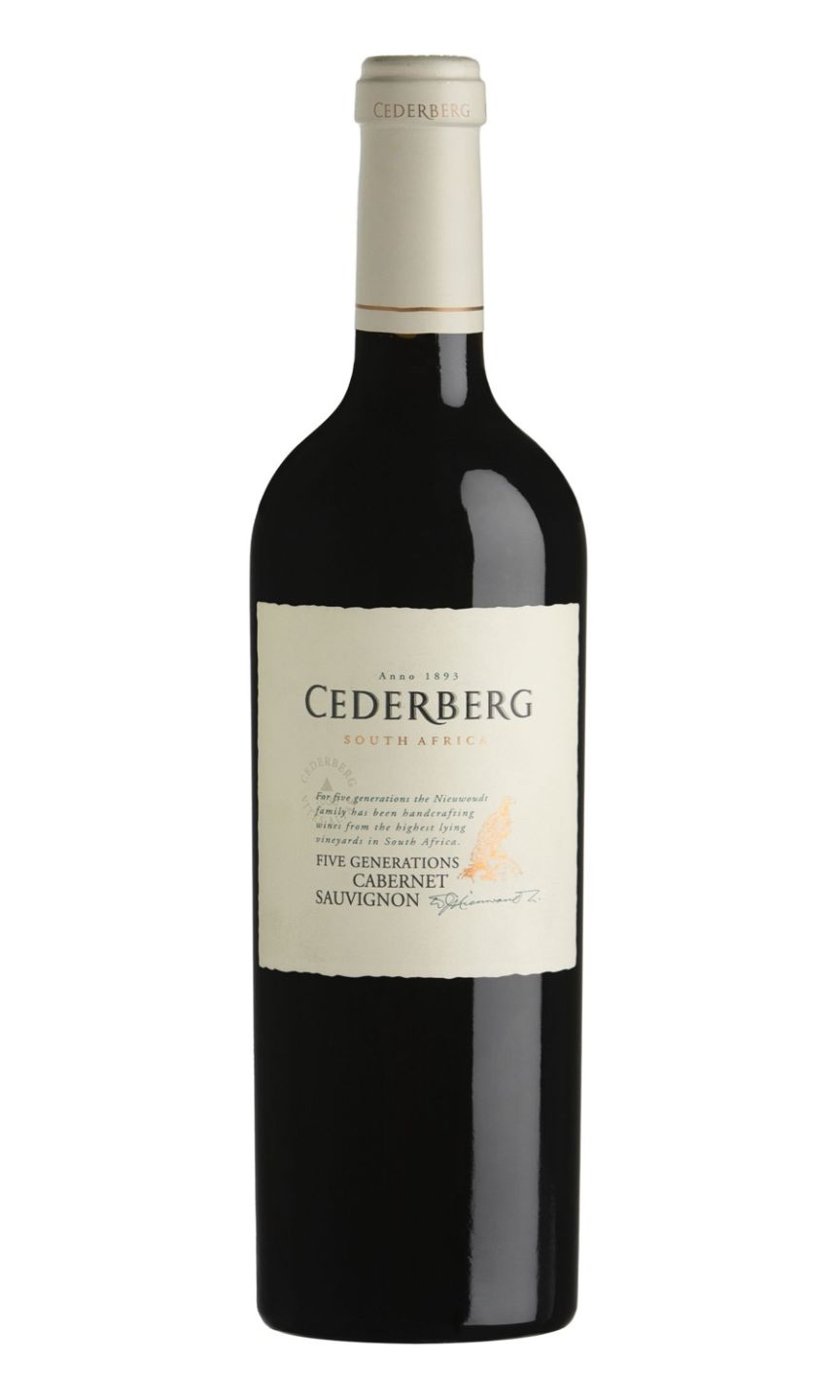 Cederberg Five Generations Cabernet Sauvignon features a stunningly deep ruby-red hue, boasting a symphony of decadent, dark fruit flavours. Cherries, plums, and blackcurrants assert themselves richly, accented by traces of exotic spices and a captivating hint of mintiest chocolate. This exquisite South African wine exhibits a finely balanced structure, subdued tannins, and a delicately oaky finish, testament to its eighteen-month sojourn in French oak barrels. It is an intoxicating experience, a masterful tribute to Cederberg's five generations of wine crafting genius. This wine rewards patience, with its complexities deepening after several years of cellaring.