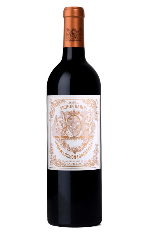 Château Pichon-Longueville Baron 2ème Cru Classé Pauillac is a quintessential Bordeaux red, notable for its depth, complexity, and remarkable ageability. An exquisite blend of Cabernet Sauvignon and Merlot, its placement as a 'Deuxième Cru' in the 1855 Bordeaux classification reflects its exceptional quality. On the palate, it unravels layers of ripe blackcurrant, cedarwood and subtle spice, wrapped in velvet tannins. This wine's elegant structure and profound longevity make it a standout in the illustrious Pauillac appellation. Mastery in viticulture and traditional winemaking inspire its creation, resulting in a wine equally esteemed by critics and connoisseurs.