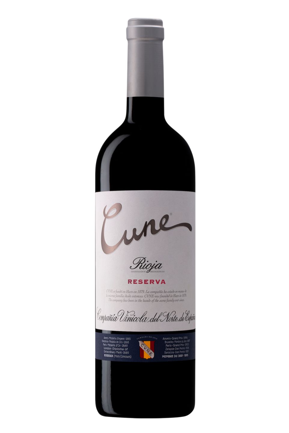 C.V.N.E Cune Reserva is a significantly enchanting Spanish red wine originating from the reputable Rioja region. With a compelling blend of Tempranillo, Graciano, and Mazuelo grapes, it exhibits a rich, complex profile abundant in aromas of red fruits, cocoa, and a hint of spices. Being aged in French and American oak barrels, it brings forth an appetizingly bold structure, enjoyable tannins, and a refined woody undertone, culminating in a long, gratifying finish. Paired perfectly with grilled meats or mature cheeses, this wine represents a stunning example of tradition and craftsmanship in winemaking. Cune Reserva is sure to delight any wine lover's palate.