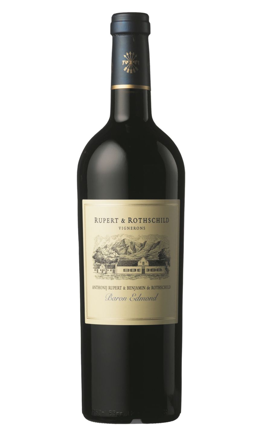 Rupert & Rothschild Baron Edmond is a spectacular wine born from a collaboration between two esteemed wine families. This exquisite South African Bordeaux blend features intermingled notes of black cherry, cassis and plum with a subtle hint of spicy oak. The Baron Edmond presents a rich palate experience, balancing bold fruitiness and tannic depth with genteel refinement. Dark fruits take centre stage, underscored by hints of mocha and tobacco. A velvety mouthfeel and a lingering finish complete this indulgent wine, offering a polished, elegant drinking experience suitable for any sophisticated occasion.