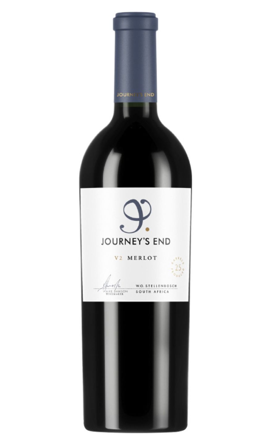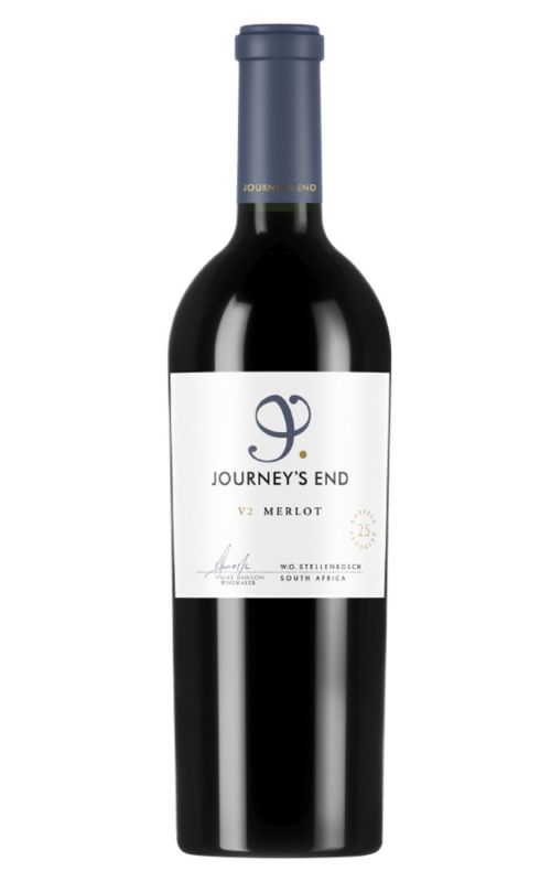 Journey's End V2 Merlot wine is a premium quality, full-bodied merlot, hailing from South Africa's premier vineyards. Enticingly rich in deep ruby colour, this wine offers a beautiful combination of ripe plum and blackberry nuances, harmoniously complementing its subtle oak undertones. This complex profile is enhanced by soft tannins, offering a delightfully smooth finish. Journey's End V2 Merlot exhibits a depth of flavour that tantalises the senses, offering charming hints of the exotic. A signature wine of luxurious elegance, it enriches the palate and pairs exceptionally well with hearty dishes. Perfect for special occasions or everyday indulgence.