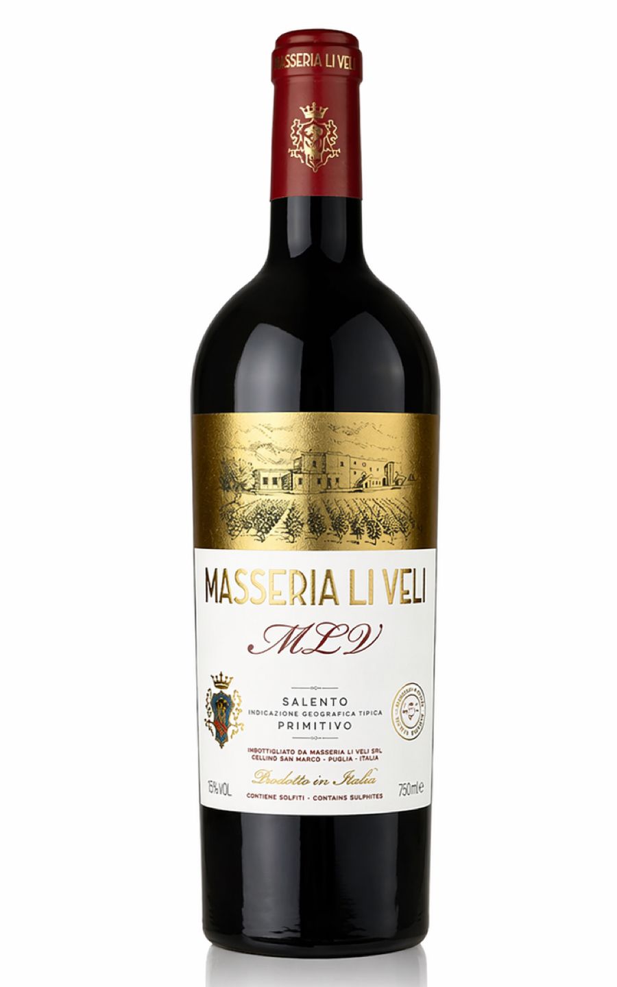Li Veli MLV Salento IGT Primitivo is a refined Italian red wine hailing from the sun-drenched region of Salento. Crafted from Primitivo grapes, it displays a rich, deep ruby hue. Offering enchanting aromas of ripe plum, black cherry, and sweet spice, it delights the palate with robust fruit flavours, silky tannins and a pleasing long-lasting finish. This full-bodied wine emanates warmth, intensity and complexity, reflective of its native terroir. Perfectly paired with hearty dishes like game or mature cheeses, this opulent vino is a truly Western Italian gem that promises an indulgent, sensory experience. Suitable for aficionados and novices alike.