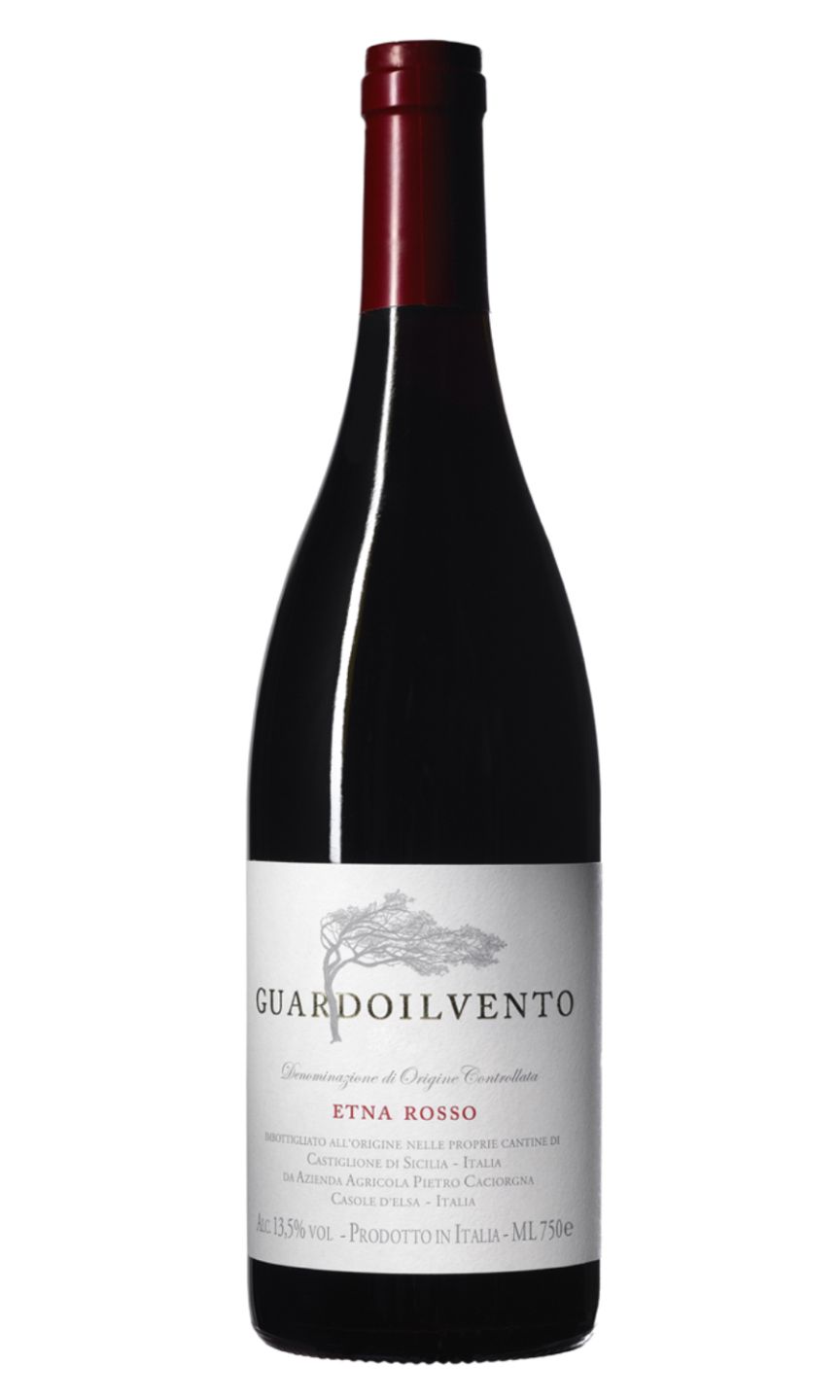 Pietro Caciorgna Etna Rosso Guardoilvento is an exquisite Sicilian wine produced from the unique Nerello Mascalese grape. It emanates vibrant red berry fragrances, with delightful undertones of thyme and rosemary, reaffirming its Mediterranean origins. Upon tasting, it releases a bold, fruity profile marked by cherries and red plums, balanced by a striking minerality and refined tannins. Hints of spice and a prolonged finish further enhance its complexity. This wine is both elegant and powerful, encapsulating the volcanic terroir of Mount Etna in each sip. Perfectly suited for those seeking a unique and discerning wine experience.