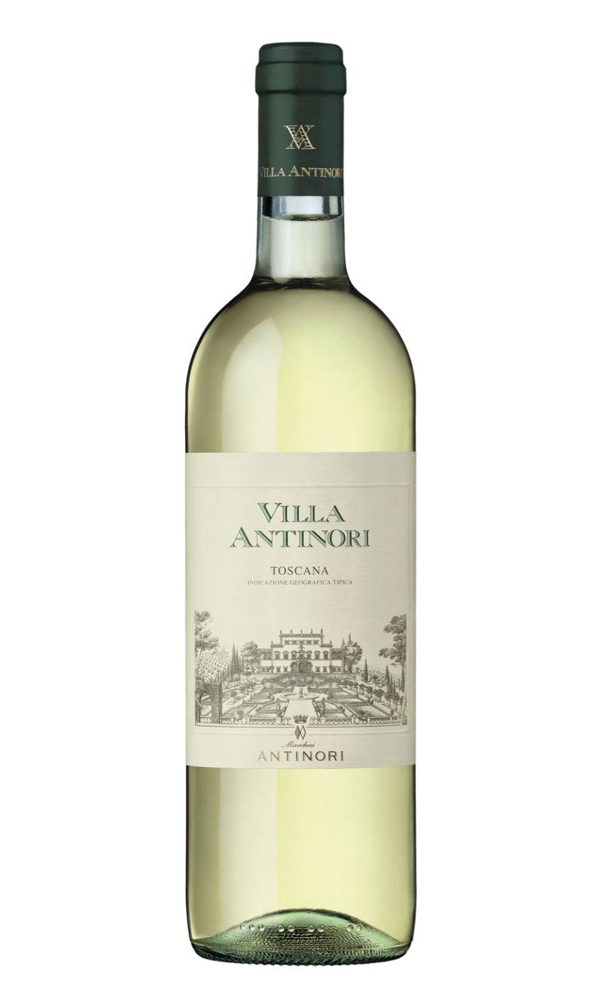 Villa Antinori Bianco shows a straw yellow color with greenish highlights. The nose, fruity and floral, offers much finesse and elegance with notes of bananas, pineapple, white flowers, and candied fruit. The palate is balanced with a good persistence and savory mineral notes on the finish and aftertaste.
