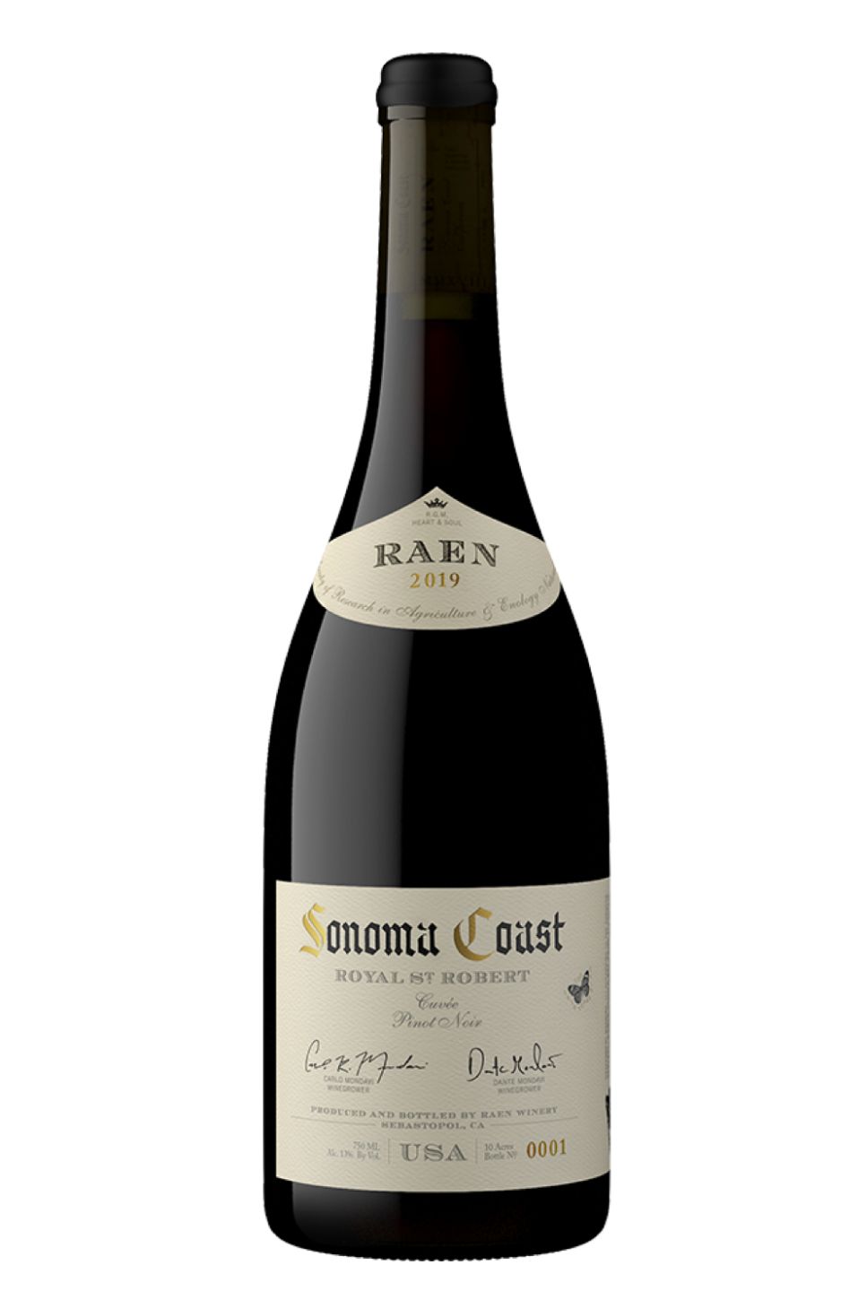 Raen Winery's Royal St. Robert Cuvée Pinot Noir wine is a stunning triumph of Californian winemaking. As a homage to the winemakers' grandmother, this selection is characterised by its elegance and finesse. The wine presents an exquisite deep ruby hue with an enticing bouquet of wild berries, mushroom, and forest floor. In contrast, its palate is an intricate weave of bright, tangy fruit, earthy undertones and structured tannins. This Pinot Noir possesses a silky texture that lends a lingering finish. The distinct character of this wine promises a beautiful pairing with hearty, savoury fare. An impeccable choice for a sophisticated palate.